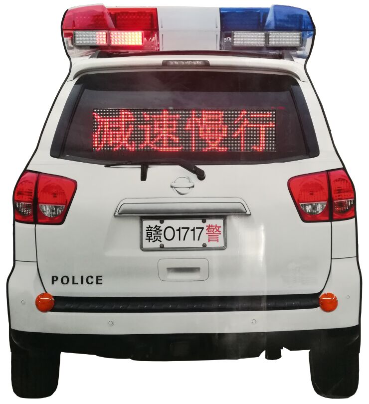 這款“仿真警車警示裝置”,是參照通用警車后背視覺圖樣,采用等比例尺寸噴繪圖案制作成面板,并按照實物的現狀布局,還配置了“后窗字幕”、“剎車燈”、“車頂警燈”等LED發(fā)光裝置,因為通常設置在取電不方便的偏遠路段,所有設計采用太陽能供電,不仔細看就像真警車一樣,特別是在動態(tài)行駛狀態(tài)中,難怪司機們都以為遇到巡邏警車了。