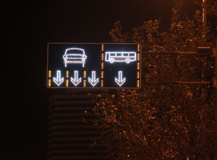 主動發(fā)光標志因其獨特的主動發(fā)光功能,不需要借助外部光源照射,自身可以主動發(fā)光,能清晰地顯示標志交通語言信息,有效規(guī)避城市遠光燈誘發(fā)的事故隱患;同時,主動發(fā)光標志,在大角度視認、惡劣天氣(雨、霧、霾、冰凝等)、惡劣環(huán)境(逆光、小半徑彎道、畸形交叉口等)等交通條件下,仍具備獨特的視認效果,能彌補普通逆反射標志在上述條件下的功能不足現(xiàn)象。小型主動發(fā)光標志,如禁令標志、指示標志、警告標志等,可通過設置閃爍模式,能有效提高動態(tài)警示效果,加強視認易捕捉性,宣誓管理意志;如線形誘導標志(俗稱:“彎道誘導標志”),可通過設置總控模式,讓一組彎道標志,按照“波浪追逐”或“同步閃爍”模式,加強彎道邊緣軌跡誘導警示。