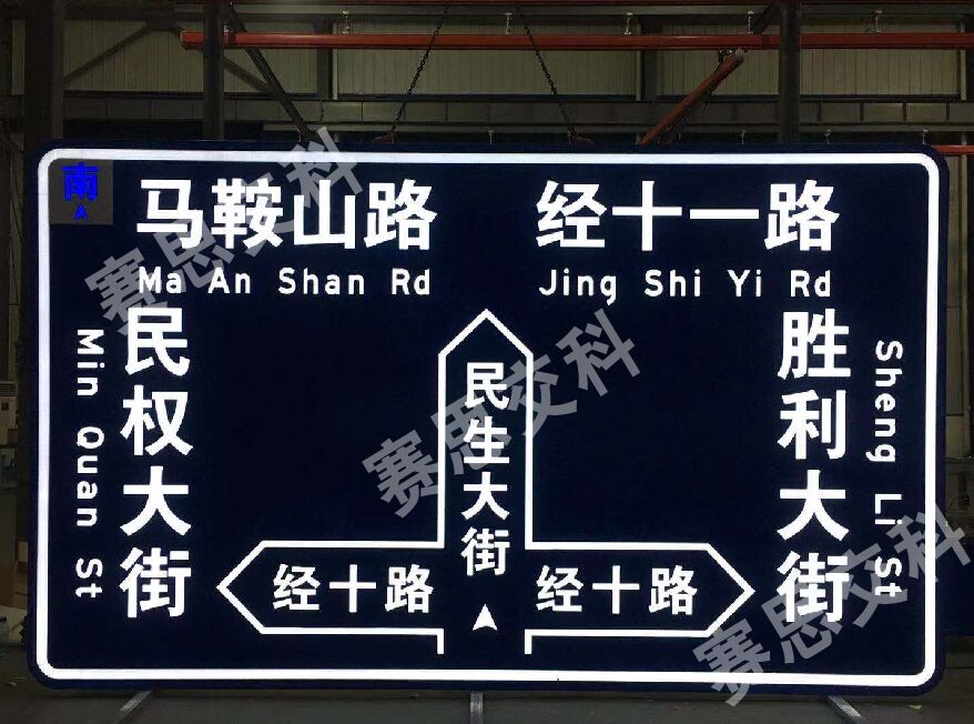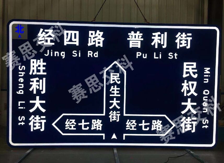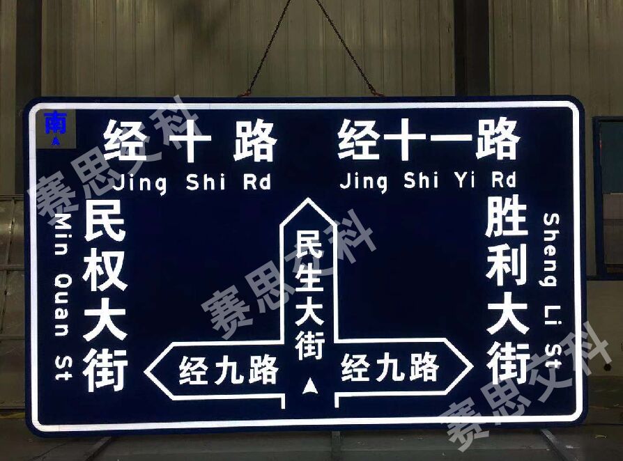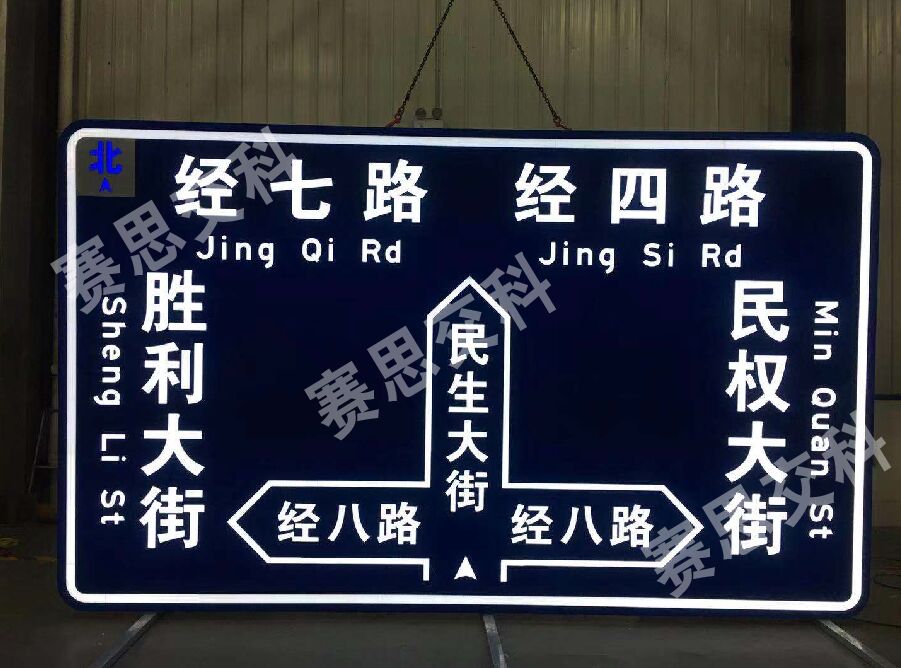 近日,濟(jì)南民生大街新添一批“半透式主動(dòng)發(fā)光指路標(biāo)志”,由南京賽思交通信息科技有限公司研制、生產(chǎn)。該標(biāo)志采用主動(dòng)發(fā)光工藝,不需要依賴(lài)外部光源照射,標(biāo)志體內(nèi)置光源投射標(biāo)志面,形成筆畫(huà)飽滿(mǎn)、對(duì)比度高的標(biāo)志發(fā)光信息,將指路標(biāo)志的交通語(yǔ)言信息在全天候展示得淋漓盡致,為整個(gè)民生大街添色不少,用主動(dòng)發(fā)光來(lái)關(guān)乎“民生”出行更加安全。