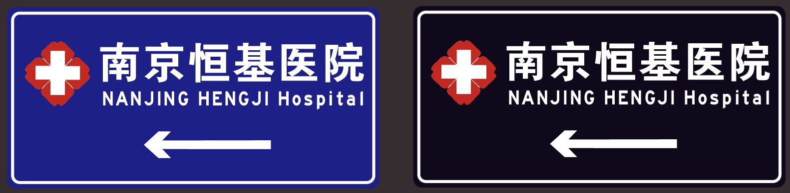 1、指示標(biāo)志。在醫(yī)院周邊的主干道上,根據(jù)實(shí)際條件,可設(shè)置遠(yuǎn)距離預(yù)告標(biāo)志,或?qū)⑨t(yī)院指示信息融入指路標(biāo)志版面;在臨近醫(yī)院入口相交的市政道路上,設(shè)置醫(yī)院指示標(biāo)志??刹捎?a href="http://m.4yfotyk.cn/category/chanpin/zhudongfaguangbiaozhi">主動發(fā)光標(biāo)志。(下左圖:白天效果;下右圖:夜晚效果)