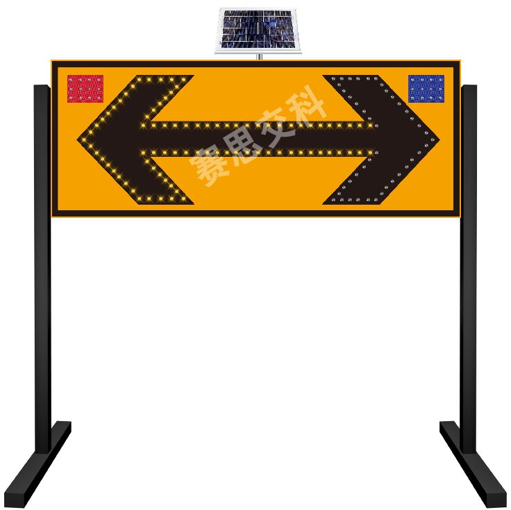 1、工藝描述:采用鋁板材質(zhì),左右各嵌入紅藍簡易爆閃燈,設(shè)置雙向箭頭標識,嵌入LED高亮發(fā)光管,采用太陽能供電方式,實現(xiàn)主動發(fā)光功能。