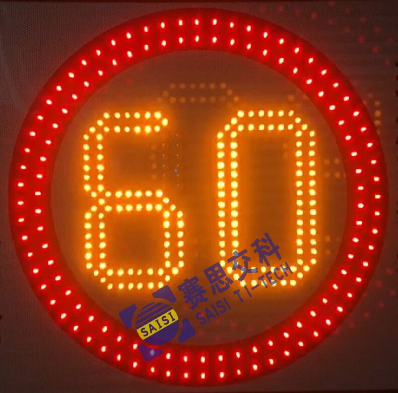 2、工藝說(shuō)明:在限速標(biāo)志版面紅圈中嵌入密集LED點(diǎn)陣,并布設(shè)“8”字?jǐn)?shù)碼筆畫(huà)板,通過(guò)手動(dòng)激發(fā)式控制方式,根據(jù)路段管制需求,動(dòng)態(tài)設(shè)置限速值。