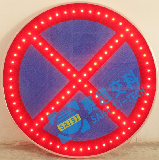 禁令類道路交通發(fā)光標(biāo)志牌,其主要功能為宣告路段或區(qū)域內(nèi),通行車輛的屬性、駕駛行為、通行軌跡的行政管理指令。如:“限制速度標(biāo)志”、“禁左標(biāo)志”、“禁停標(biāo)志”、“禁止鳴笛標(biāo)志”、“禁止超車標(biāo)志”、“限制高度標(biāo)志”、“限制貨車通行標(biāo)志”等。其形狀通常是圓形、單面八角形或等邊的自上而下的三角線,其形狀通常是白色底部、紅色圓圈、紅色斜桿和黑色圖案,"禁止停車標(biāo)志"為藍(lán)色底部、紅色圓圈、紅色斜桿。該類標(biāo)志,通常選用“全透面板型主動(dòng)發(fā)光標(biāo)志”、“外置點(diǎn)陣型主動(dòng)發(fā)光標(biāo)志”等類型。
