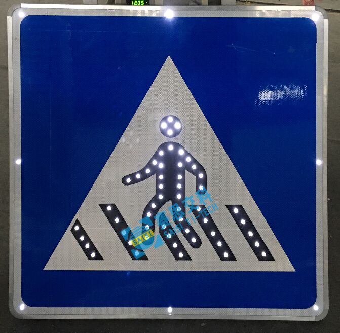 (3)注意行人發(fā)光警告標志(輔標"有人過街、注意禮讓")
