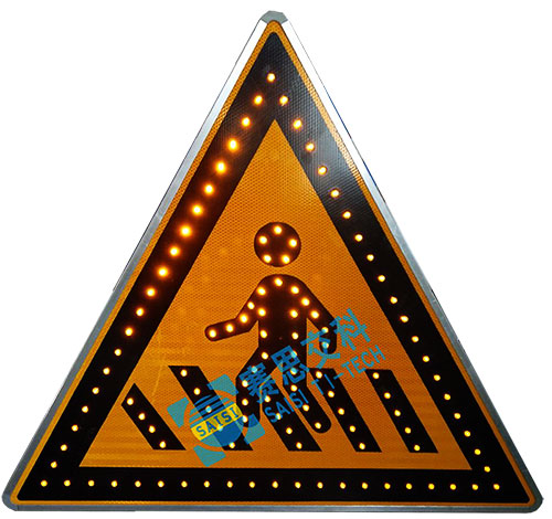 (二)標志、標線設置。設置了行人過街斑馬線的上游30—50米范圍內應設置“人行橫道指示標志”,安裝面角度向道路中央線傾斜角度,以保證司機有充分的觀察視角,不得被遮擋,可根據需要設置主動發(fā)光標志,提高全天候視認效果,和夜間的遠距離視認性,同時也能加強標志的信息突顯性,增強司機的及時捕捉、發(fā)現的概率。