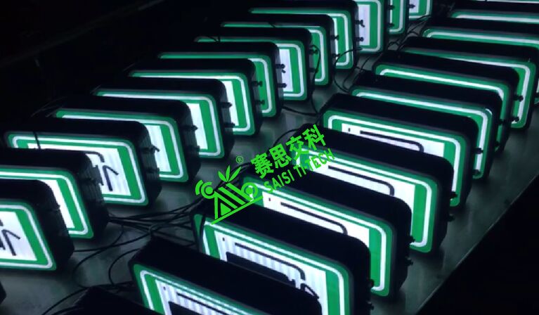 隧道雙面全透電光標(biāo)志,面板采用專用透光材質(zhì);背板采用鋁制板材;抱邊結(jié)構(gòu)采用專用的模具成型鋁制結(jié)構(gòu);面板圖案文字部分,主要分兩種:(1)國標(biāo)IV類反光膜;(2)UV專用圖案打?。ú环垂猓?。其安裝通常采用L型支架架構(gòu),側(cè)裝于隧道內(nèi)壁。光源采用專用內(nèi)置照明超亮燈珠,內(nèi)部投射于標(biāo)志表面,形成發(fā)光效果。