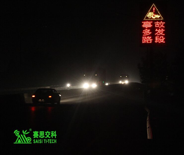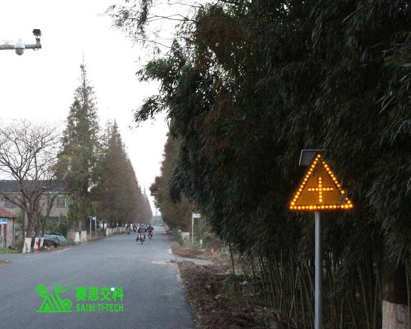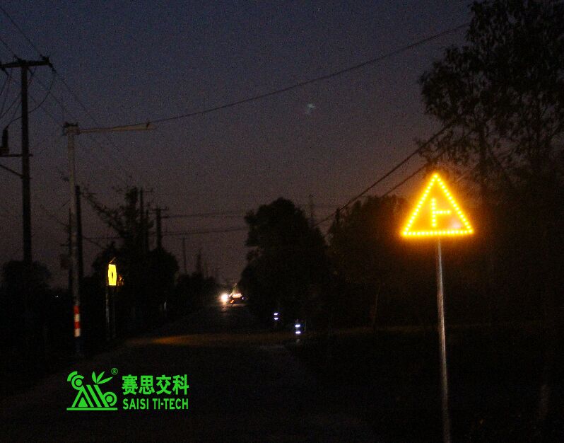 ②交通標(biāo)志。公路主線應(yīng)設(shè)置必要的“限速+注意前方岔口”標(biāo)志,有條件的,可采用太陽(yáng)能主動(dòng)發(fā)光標(biāo)志,以提升遠(yuǎn)距離視認(rèn)性,及夜間警示效果。
