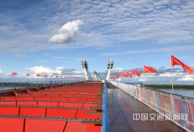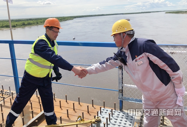中俄兩國有關(guān)部門負(fù)責(zé)人,大橋建設(shè)者參加合龍儀式。大橋建成后,預(yù)計到2020年客運量可達140萬人次,貨運量可達300萬噸,將成為促進邊境地區(qū)繁榮發(fā)展的新橋梁、鞏固和深化傳統(tǒng)友誼的新紐帶。