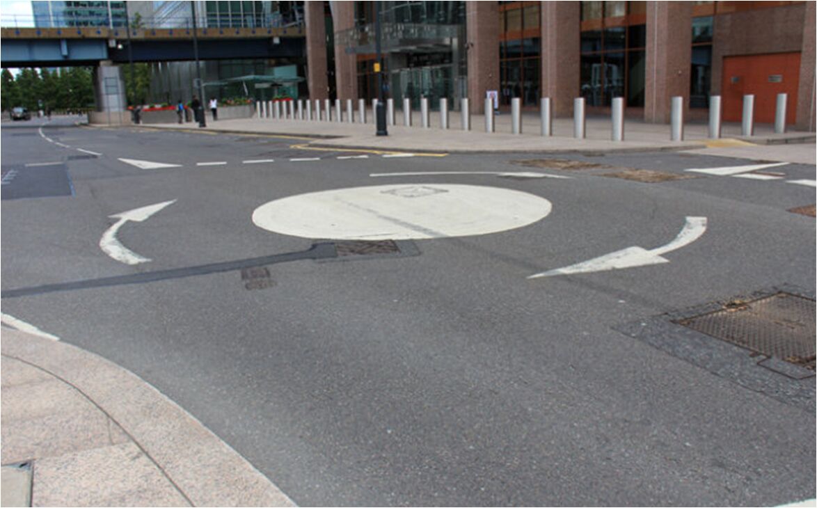 優(yōu)點(diǎn)是:能夠緩和主干道上的車速;與信號(hào)控制相比,能夠提高交通安全,減少排隊(duì)長度,降低運(yùn)營成本;如果設(shè)計(jì)得當(dāng),還能起到美化環(huán)境的作用。缺點(diǎn)是:可能造成大型車的通行困難,比如消防車;所占空間會(huì)比較多。