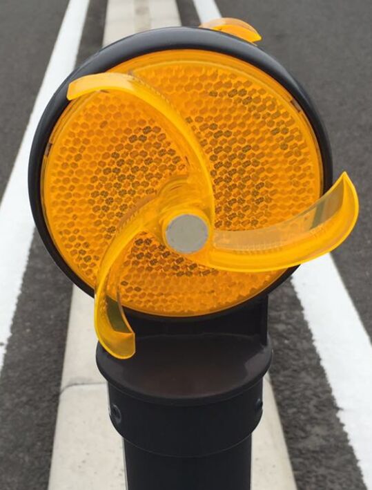描述:隔離帶端頭警示柱,設(shè)置三角刮面風(fēng)車結(jié)構(gòu),利用自然風(fēng)或車輛快速通過時的空氣流動,帶動三角風(fēng)車轉(zhuǎn)動,及時清除發(fā)光面灰塵。