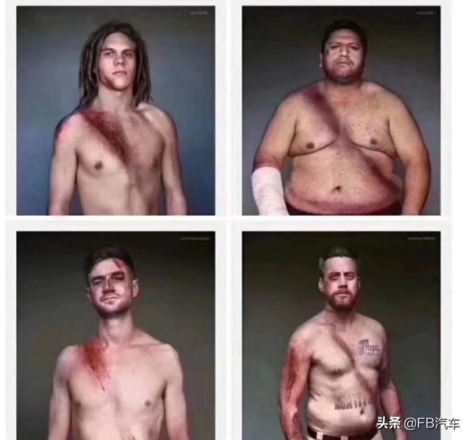 ??????? 下圖為美國交通安全部門提供的交通事故幸存者照片,這些安全帶勒痕,是事故發(fā)生后的存活印章,看起來異常觸目驚心,但他們卻因此而感激涕零,因為在交通事故發(fā)生時,他們系好了安全帶,成了幸存者,而那些沒系安全帶的,不僅沒了勒痕,也沒了生命。